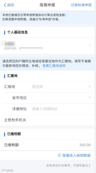 通过简易申报流程办理退税业务的人员,请务必在2020年5月31日之前完成申报。申报过程中,无法修改个人收入信息;如需修改,只能通过标准申报流程办理。