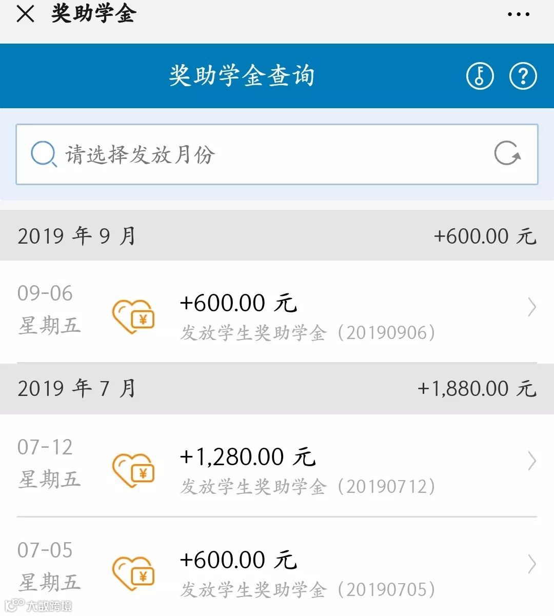 我的奖助学金每个月有多少?