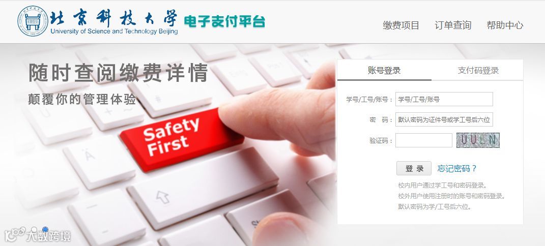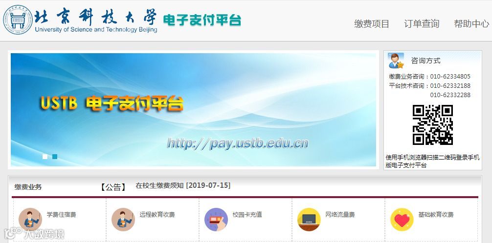 电子支付平台 电子支付平台的出现使我校基本实现了无现金校园,同学们可以通过电脑或手机登录电子支付平台进行各类业务网上缴费。 https://pay.ustb.edu.cn
