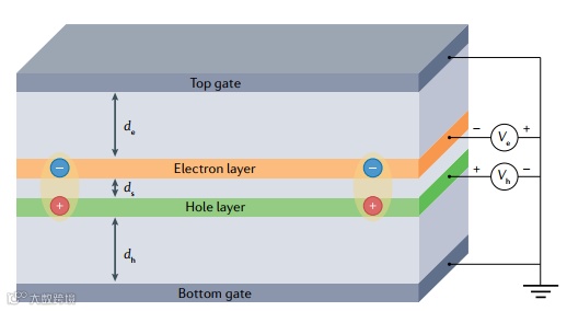 自20世纪60年代以来,人们认识到了激子实现玻色-爱因斯坦凝聚的可能性。然而,在块体材料中,实现明确激子凝聚,一直是极具挑战性的。主要障碍之一,就是是光学产生激子的短寿命,原则上,可以通过将电子和空穴分离到不同层中,以增加其光学复合时间的。电子和空穴之间的空间分离,也确保了激子之间的排斥偶极相互作用,并防止了双激子形成。