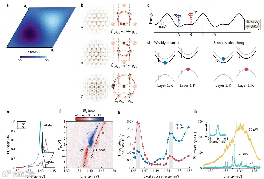 图1:过渡金属二硫族化合物transition metal dichalcogenide,TMD异质结构的激子。