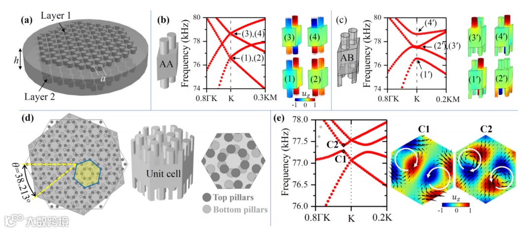 近日,美国宾夕法尼亚州立大学的景云教授团队提出了一种双层声子晶体板(BPC),其中aa -堆叠、ab -堆叠和具有均匀亚晶格交换(SE)对称的扭转双层结构在弱层间耦合下表现出与经典TBG相一致的能带色散。以前的工作没有研究过双层石墨烯和弹性声子晶体之间的类似情况。此外,该工作还显示了扭转自由度与超强层间耦合相互作用的谷霍尔边界态。研究发现,在超强的层间耦合作用下,扭转BPC (TBPC)对弯曲波具有较好的低频狄拉克锥隔离,这是单层BPC所不能达到的。相关工作发表在《 Applied Physics Letters》上。并被选为编辑推荐文章。(郑江坡)