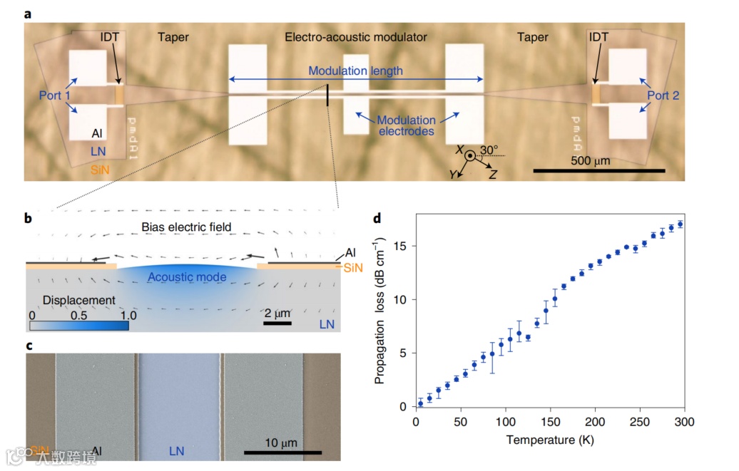 固体中的声波是各种应用的基础,包括微波滤波器、振荡器、延迟线和传感器。它们也被用作不同量子系统之间的通用接口,包括超导电路、缺陷中心和光学器件。与千兆赫(GHz)电磁波相比,声波的波长要短5个数量级,并且不会辐射到自由空间。这使得声波可以用于在一个超紧凑的足迹中的相干信息处理和操作,而器件之间和与环境之间的串扰可以忽略不计。因此,片上声子系统已经成为量子计算和存储的一个很有前途的候选者。