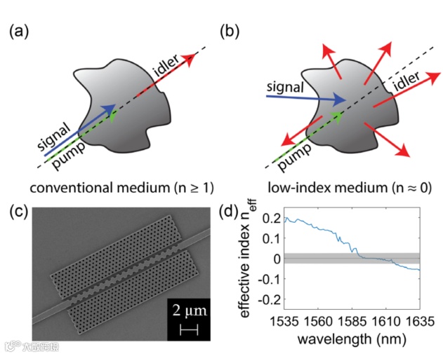 人们对使用超材料来消除这种限制和探索由此产生的新机制产生了极大的兴趣。超材料在光学材料的工程中提供了极强的灵活性,使许多不寻常和有趣的特性,包括负折射率。具有负折射率的材料已被用来演示非线性信号波与泵浦波传播时产生的二次谐波,称为反向相位匹配。在考虑零指数媒介时,可以进一步探讨这种独特的行为。