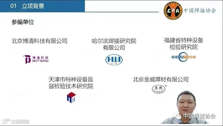 8月26日,中国焊接协会召开了线上团体标准宣贯会,会议由中国焊接协会副秘书长方乃文主持。会议邀请了北京博清科技有限公司的国际焊接工程师陈子胥就北京博清科技有限公司牵头起草的T/CWAN 0049—2021《立式储罐无轨导爬壁焊接机器人焊接工艺规范》和T/CWAN 0050—2021《球形储罐无轨导全位置爬壁焊接机器人焊接工艺规范》2项团体标准进行了宣贯解读。线上共有30多家单位40余位代表参加了宣贯会。
