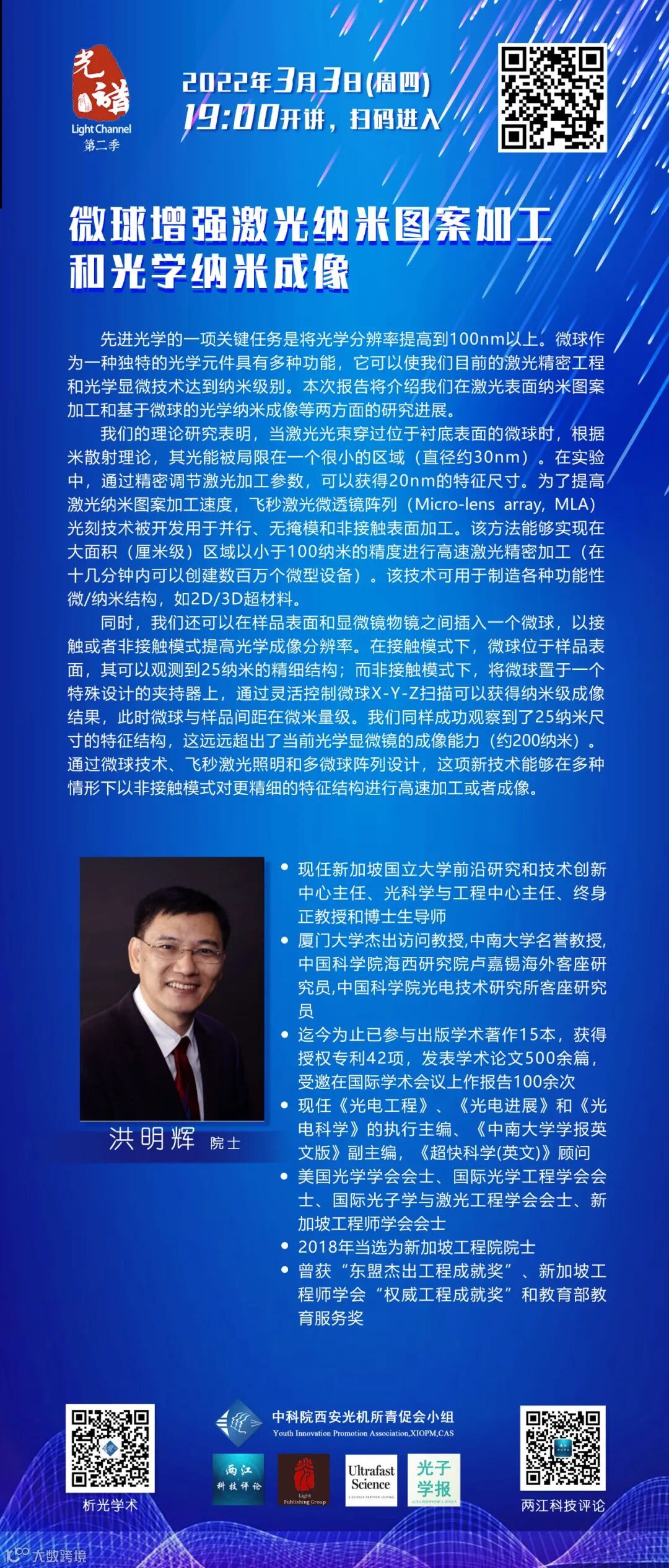 【今晚直播】微球增强激光纳米图案加工和光学纳米成像—洪明辉