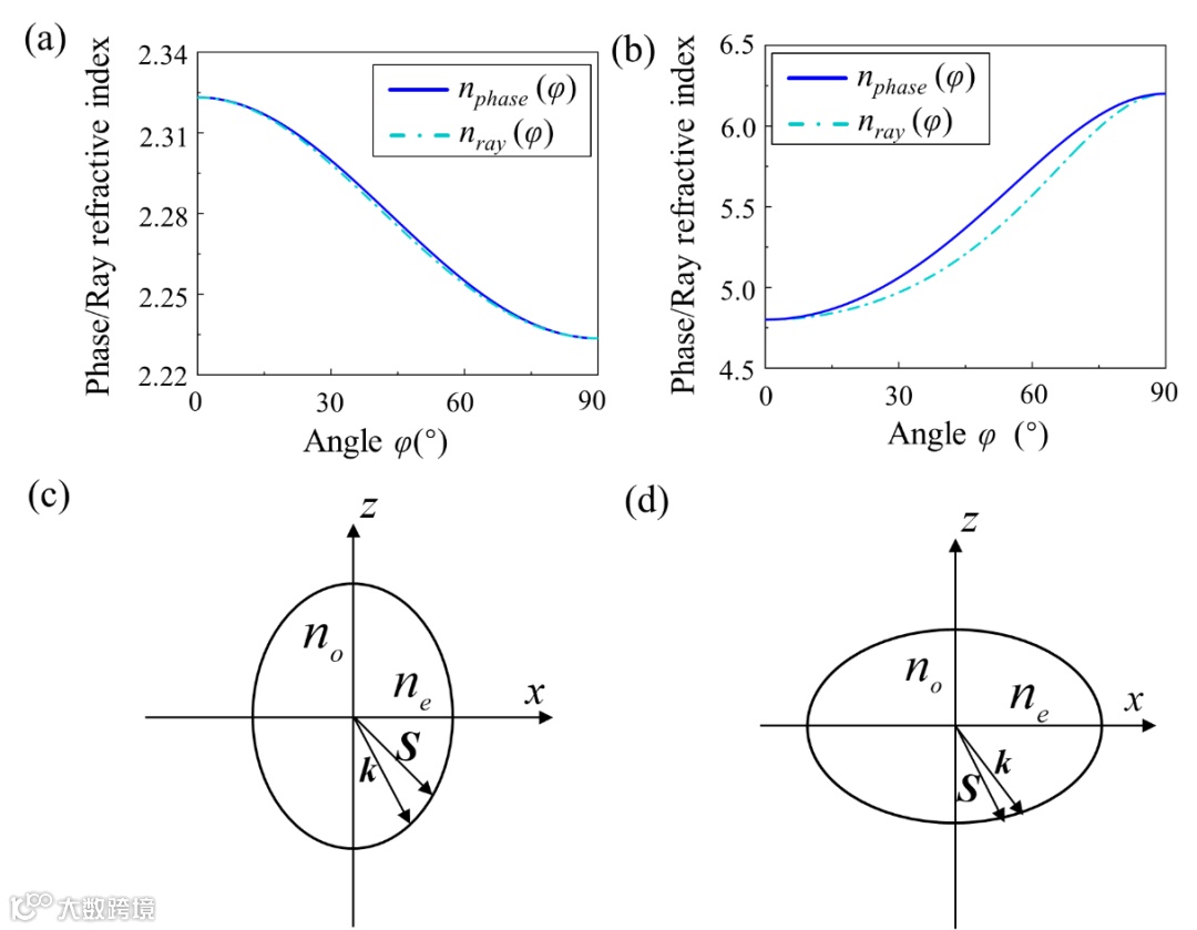 尽管在许多前人的努力下,双折射晶体中非寻常光光束的传播已经被详细讨论,然而许多经典教材中,对于晶体光学的光波传输行为存在求解过程较为复杂和理解困难的问题,给学习者和研究者在学习过程增加了一定难度,而且在一定程度上给物理教学带来困难。此外,相比于晶体光学中的折射角,人们对于晶体表面的反射率和透射率的理论计算知之较少。例如,在Born和Wolf的经典教科书《光学原理》中,基本的步骤是将麦克斯韦方程组和向量恒等式结合起来,求解波向量k和电位移向量D的关系式(即菲涅尔方程),利用该方程确定折射角和折射率椭圆的显式表达式。由于教材的内容需要普适性,于是引入了许多符号、定义、参数和图表来帮助数学推导以及物理讨论,因此对于该基本问题的计算步骤和程序也就稍显复杂。同样的情况也出现在其他教科书中,如赫克特的《光学》、赵凯华的《光学》和梁铨廷的《物理光学》。