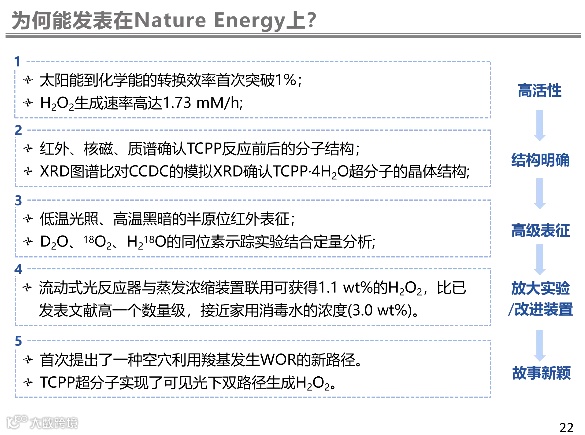 张老师则专注于光催化产过氧化氢的研究领域。详细介绍了这一研究的背景和工业应用,强调了绿色生产在当今社会的重要性。张老师分享了通过羧基苯超分子实现双路径合成过氧化氢的研究成果,包括高活性和新机理的发现。这些成果不仅具有重要的科学意义,也为实际应用提供了新的思路。在实验设计和表征方法方面,张老师详细讨论了同位素实验和激光吸收光谱仪的应用。这些先进的实验方法为研究提供了坚实的数据支持,确保了研究结果的可靠性。最后,张老师总结了论文写作和投稿的经验,再次强调了创新性、数据扎实性和故事构建的重要性。这些经验对于其他科研工作者在撰写和发表光催化相关论文时具有重要的参考价值。