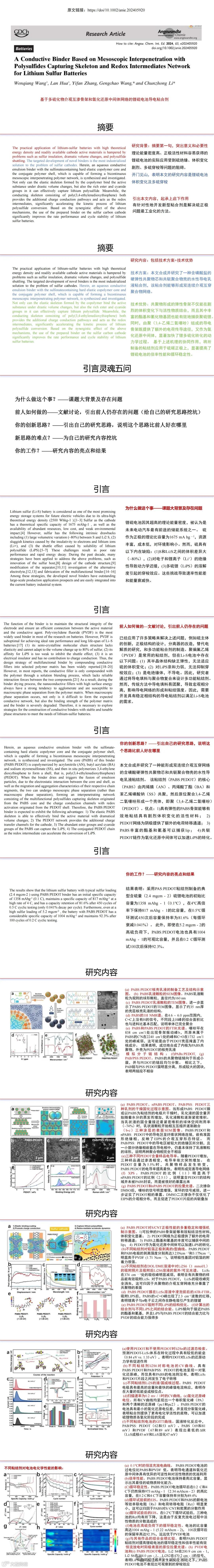 Angew:基于多硫化物介观互渗骨架和氧化还原中间体网络的锂硫电池导电粘合剂