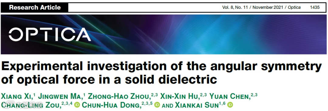 光对物质的力效应在基础研究和工程领域有着广泛的应用,最典型的要数曾获1997和2018年诺贝尔物理学奖的激光冷却和光镊技术。然而,一百多年来物理学界对于光力在电介质内的具体形式仍存在争议,其中关于Lorentz和Einstein–Laub两种理论及相应公式的争论尤为激烈。近日,香港中文大学孙贤开课题组和中国科学技术大学董春华、邹长铃课题组合作,利用超高灵敏度的光力系统研究了固体电介质中光力的角对称性,为解决相关领域的争论提供了重要的实验证据,其成果于11月4日在线发表于著名光学期刊《Optica》。香港中文大学博士生习翔为论文第一作者,香港中文大学博士生马静文、中国科学技术大学博士生周中昊、胡昕欣、陈元参与了研究。