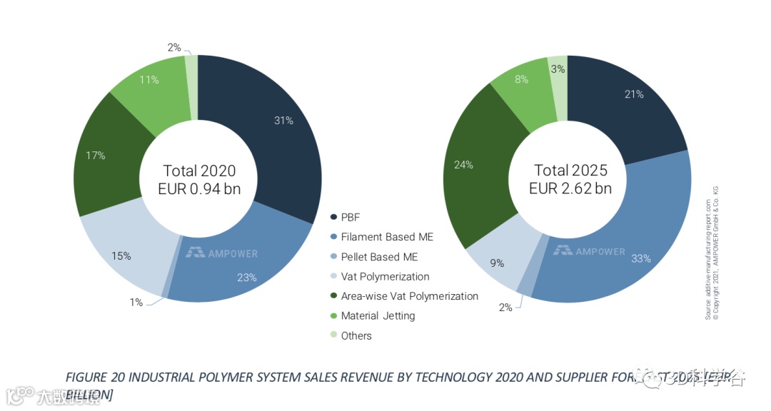 ▲工业级塑料3D打印设备销售情况(2020年情况,2025年预测)