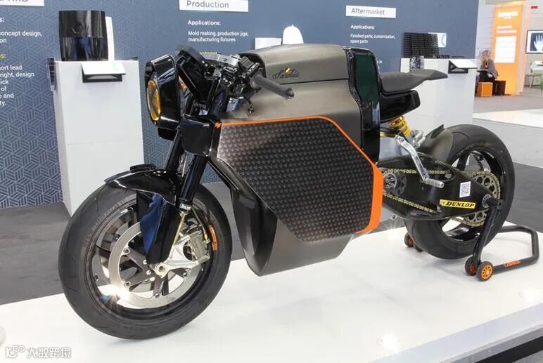 ▲原型及电池座、空气管等多个零部件由Polymaker 不同材料打印的Sarolea摩托车。