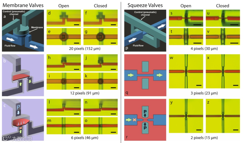 制造微流控器件的首要特点是在固体材料中创造负空间,即空洞。制造这种空隙的传统方法往往会使设备开发的过程变得十分冗长和昂贵。近年来,由于3D打印技术在微流控设备制造方面能够将开发周期的制造部分缩短到几分钟的时间尺度,因此展现出加速设备开发的极大潜力,引起了人们的广泛关注。此外,3D打印还能够制造出包含传统平面方法无法制造的元件的设备。在此基础上,数字光处理立体光刻(DLP-SL)为3D打印微流控器件提供了一种特别吸引人的方法,因为与最接近的竞争对手基于喷墨的材料喷射法相比,它至少可以实现十倍的分辨率。与亚微米分辨率的双光子聚合相比,可以在更短的时间内制造出更大的结构尺寸。但这种高分辨率的特性却受到了不必要的限制。这种限制主要是由于层厚、曝光时间、材料强度和光学穿透度之间的固有权衡,而这些可能无法满足微流控特性。