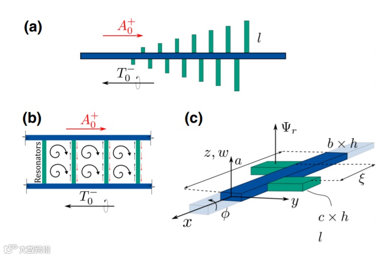 调控波传播的机制引起了物理学不同领域的广泛关注,并在量子、电磁、声学和弹性系统中均有实现。其中,弹性波导由于具有不同极化和耦合的多种模式,与电磁波相比,建立起来相对简单。在非对称的情况下,一般难以形成多种杂化模式,但这种对称性破缺可以解除偶然简并性。由于轴向振动和弯曲振动之间的耦合,分级结构已表现出频率间隙和波导等特征。弯曲波和纵波之间的有效模式转换已通过在连续介质 (BIC)中的准束缚态下具有完美模式转换 (TMPC) 的捕获模式或跨模态法布里-珀罗共振实现。诱导模态耦合的其他方法可利用非线性动力学,然而激活足够强的非线性相互作用需要的大振幅却难以实现。最近的一项工作采用嵌入在主体结构中的渐变谐振器阵列,通过利用谐振器-结构相互作用来操纵波传播。这种调制策略促进了波数变换,进而激活了不同频率下波速的减小,这就是所谓的彩虹效应。