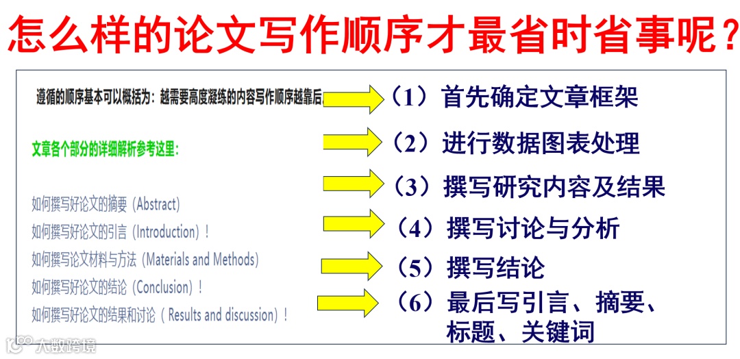 大家好!论文的写作顺序是非常重要的,合理的安排论文各部分的写作顺利可以极大的提高写作效率,达到事半功倍的效果,下面将详细介绍两写作顺序安排方面的技巧。小伙伴们,一定要记得点赞收藏!别用的时候找不到啊