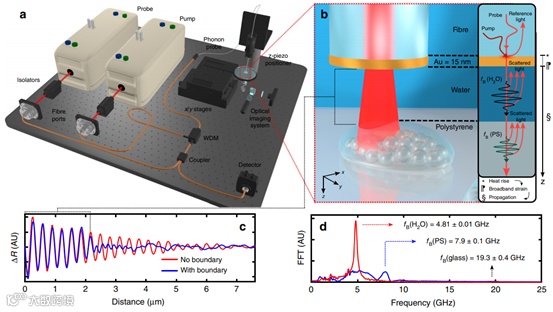 通过该团队自主开发的一种信号处理技术,研究人员可以从GHz频率声波中提取纳米级深度空间测量值,同时仍允许在频域中进行布里渊光谱分析。整个装置具有2.5μm光学横向分辨率,并且通过声学可以提供45nm的深度轮廓图精度。