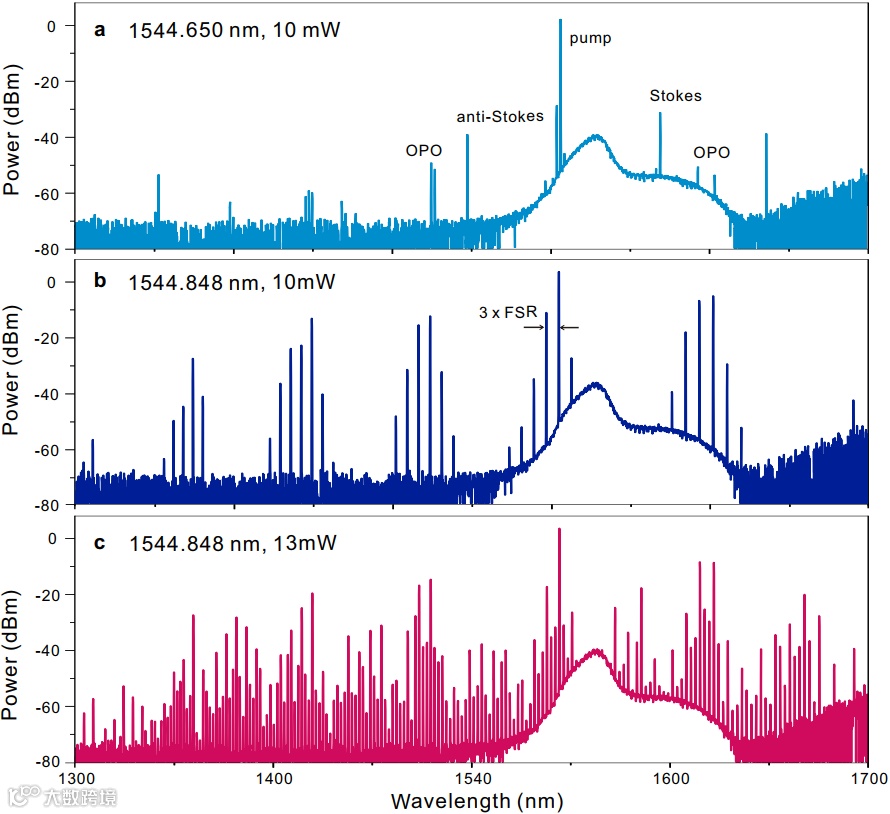 图6 高Q值SiC微腔的宽谱克尔频梳产生。