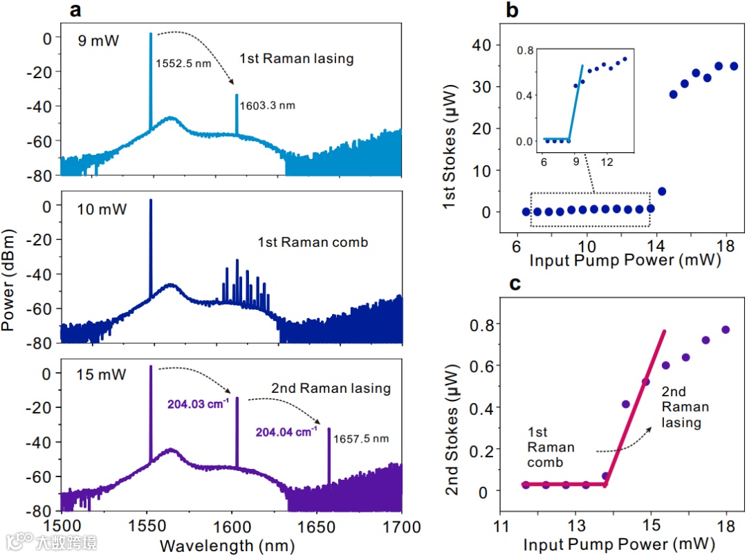 图5 高Q值SiC微腔的受激拉曼激光产生。
