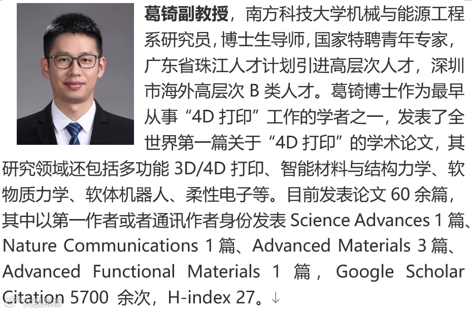 峰会主席:葛锜 副教授(南方科技大学)