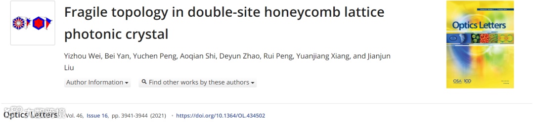 Y. Wei, B. Yan, Y. Peng, A. Shi, D. Zhao, R. Peng, Y. Xiang, and J. Liu*, “Fragile topology in double-site honeycomb lattice photonic crystal,” Optics Letters, 46(16): 3941–3944 (2021).