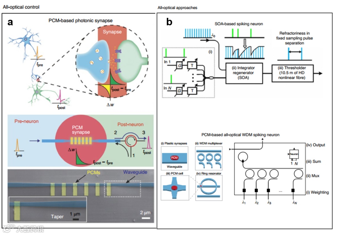图2. 光学神经突触(a)和光学神经元(b)的实现.