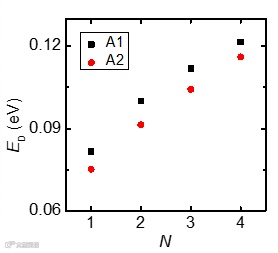 由针尖引起的能带弯曲计算所得到的A1和A2分别对应充电能级能量的分布情况