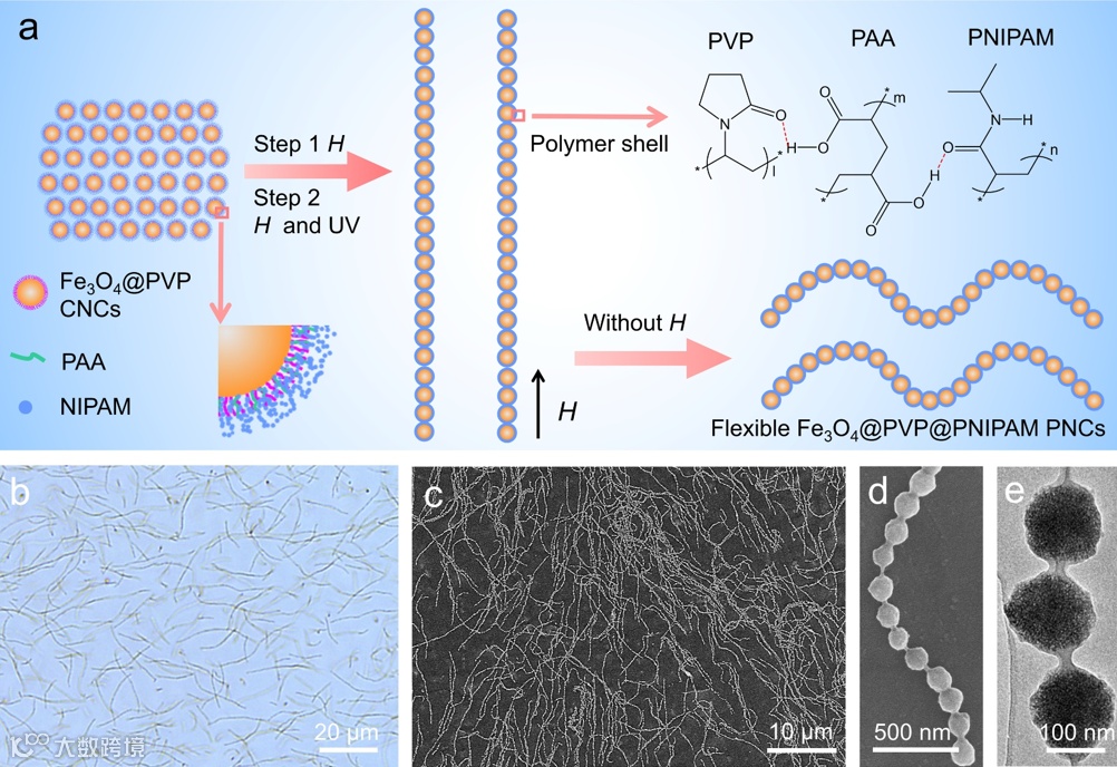 【Fe3O4@PVP@PNIPAM柔性磁性光子晶体纳米链的制备及组成与微结构】