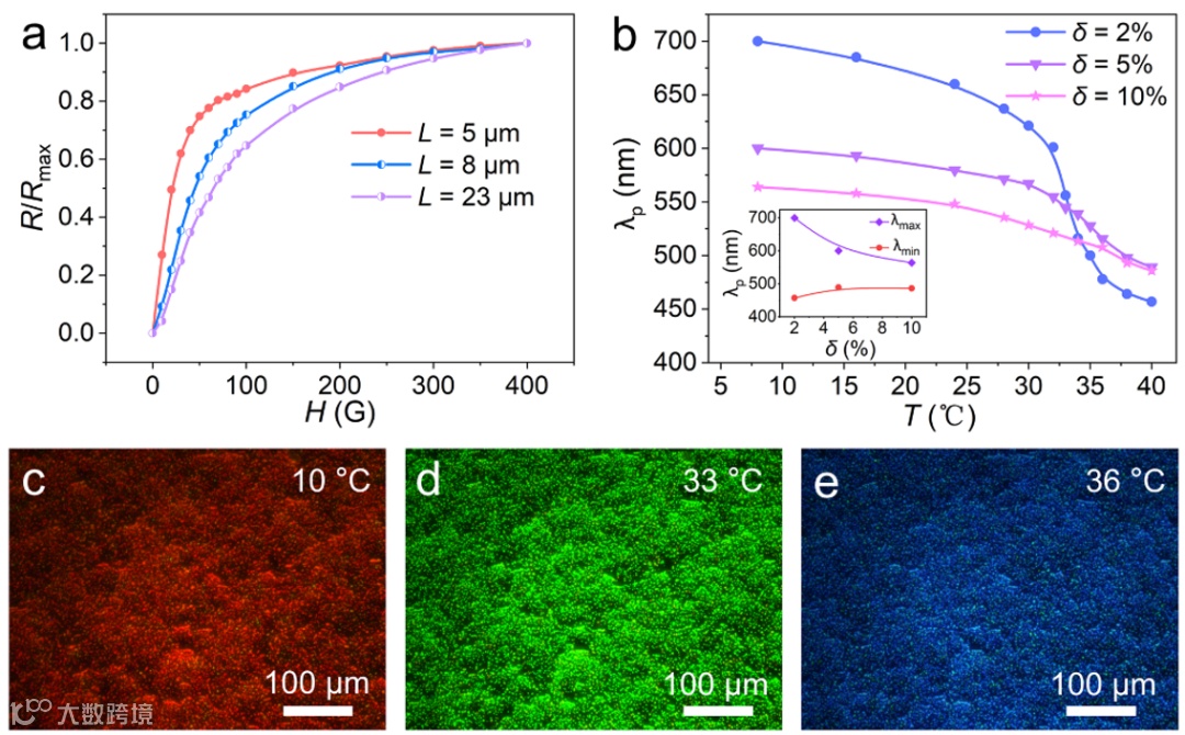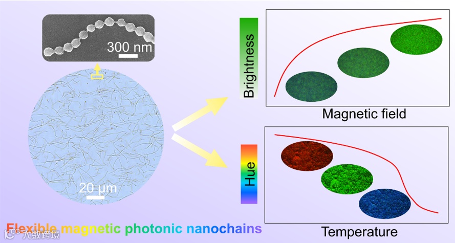 图1磁场和温度响应性光子晶体液体及其颜色亮度和色度的独立调控示意图