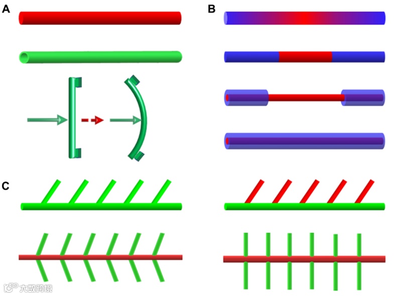 图1 各种一维有机晶体结构示意图。