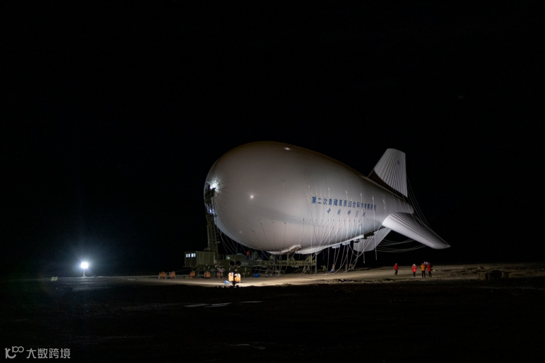 据介绍,执行此次观测任务所使用的浮空艇,是我国自主研发的系留浮空器,长55米、高19米,体积达9060立方米,利用浮升气体的浮力升空,通过地面锚泊设备系缆控制升空和驻空。