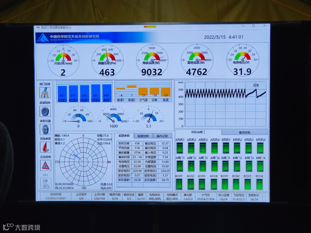 中国科学院空天信息创新研究院“极目一号”Ⅲ型浮空艇地面控制软件显示,浮空艇达到海拔9032米(5月15日 摄)。新华社记者 田金文 摄