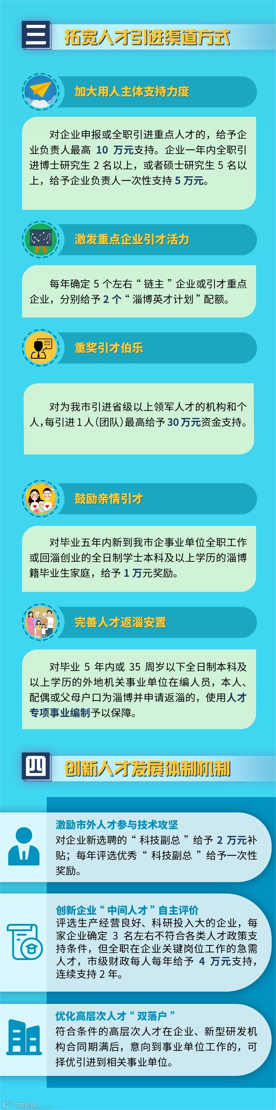 人才政策创新性和竞争力,实现人才政策“最优加一点”。近日,淄博市对“人才金政37条”进行升级完善、提标扩容,出台《关于加强新时代淄博人才工作若干措施》(简称“淄博人才金政50条”),为各类人才在淄创新创业、居住生活提供全方位政策支持保障。