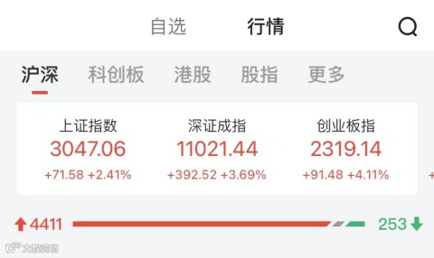 4月29日,A股三大指数集体上涨。据Wind数据,截至收盘,上证指数上涨2.41%,报3047.06点;深证成指上涨3.69%,报11021.44点;创业板指上涨4.11%,报2319.14点。
