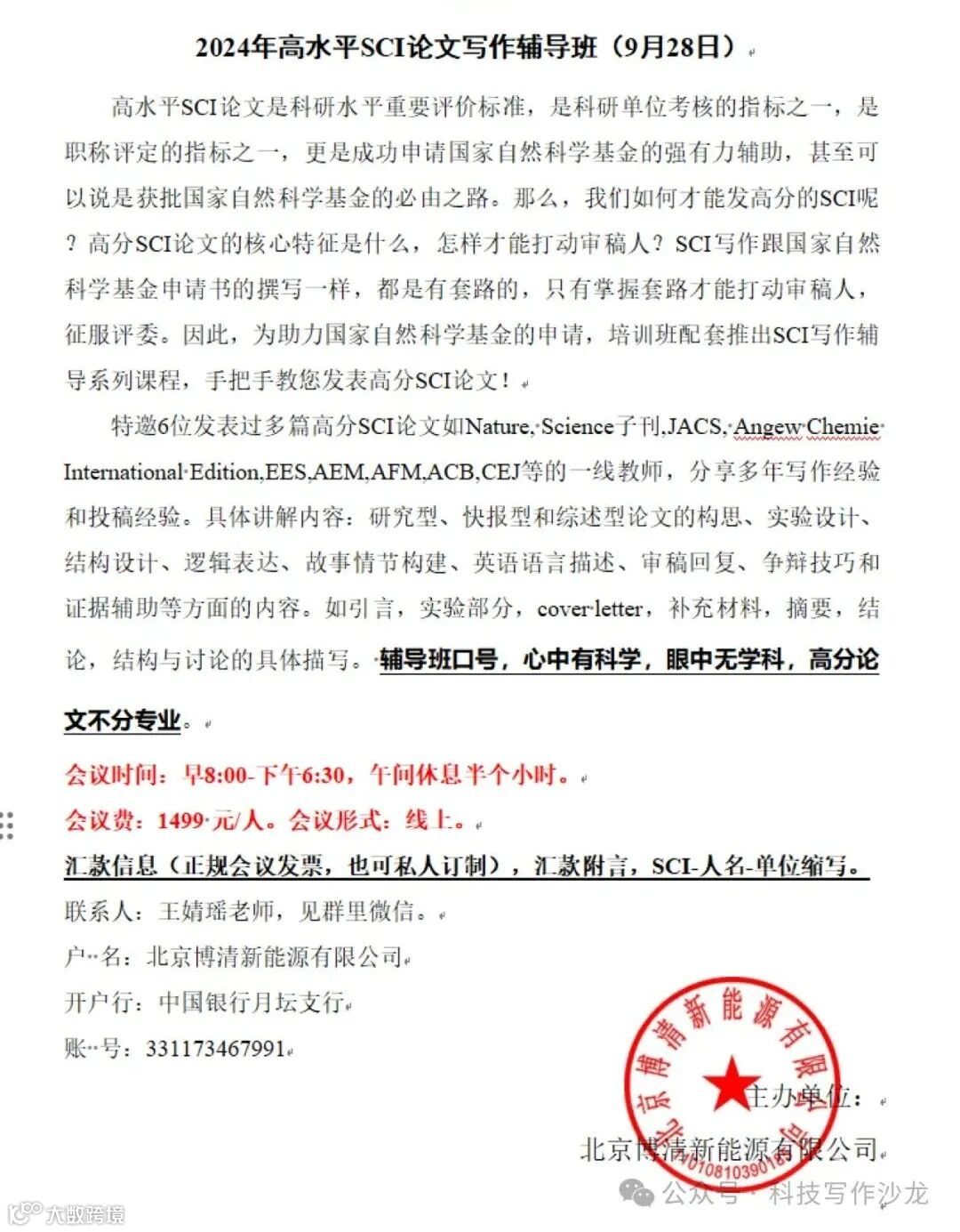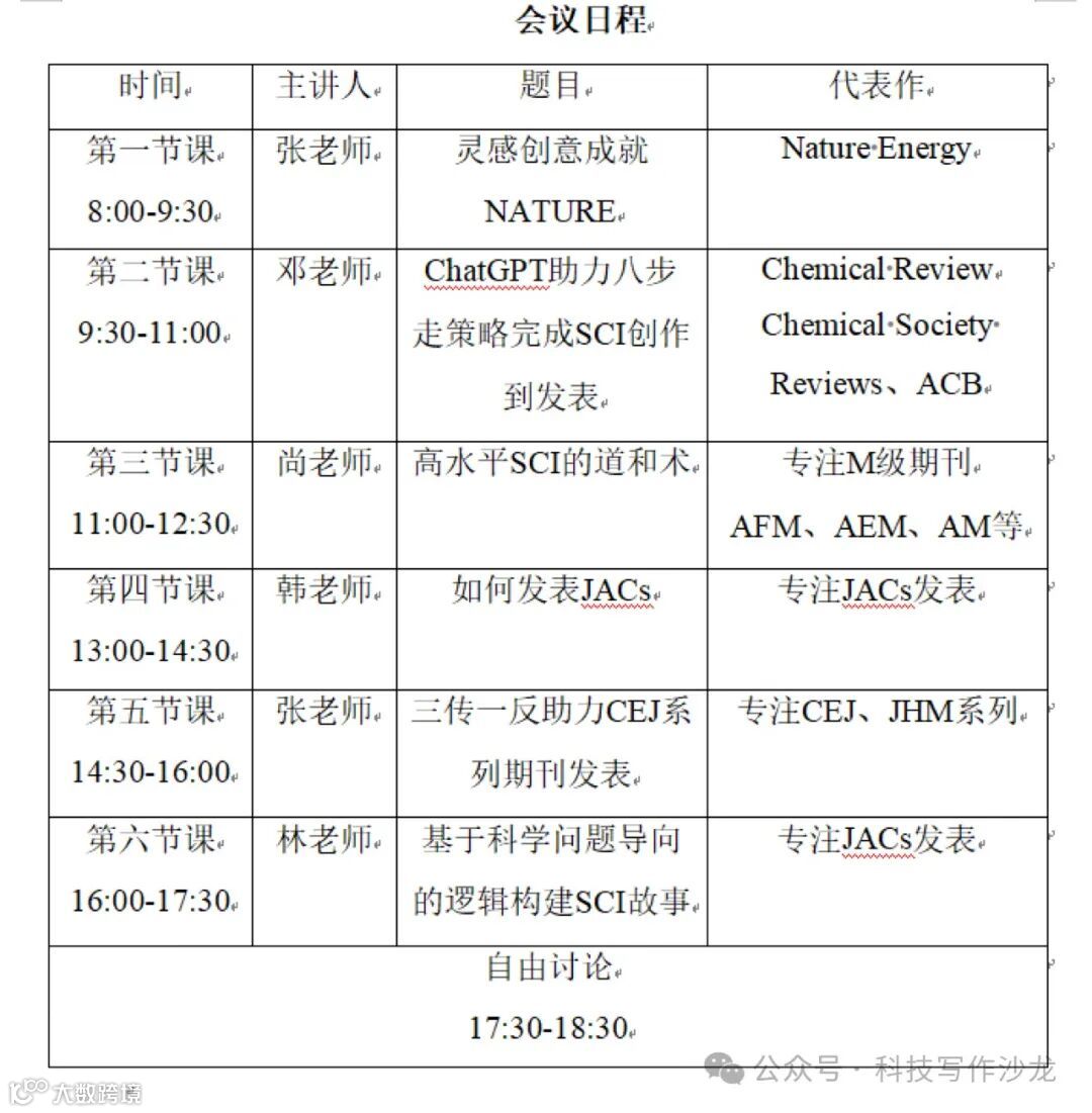 为了助力各位科研er更深入地理解高水平SCI论文写作技巧,小沙团队特定于9月28日召开线上会议,特邀6位发表过多篇高水平SCI论文的一线教师举办一期论文写作辅导班。会议具体详情如下: