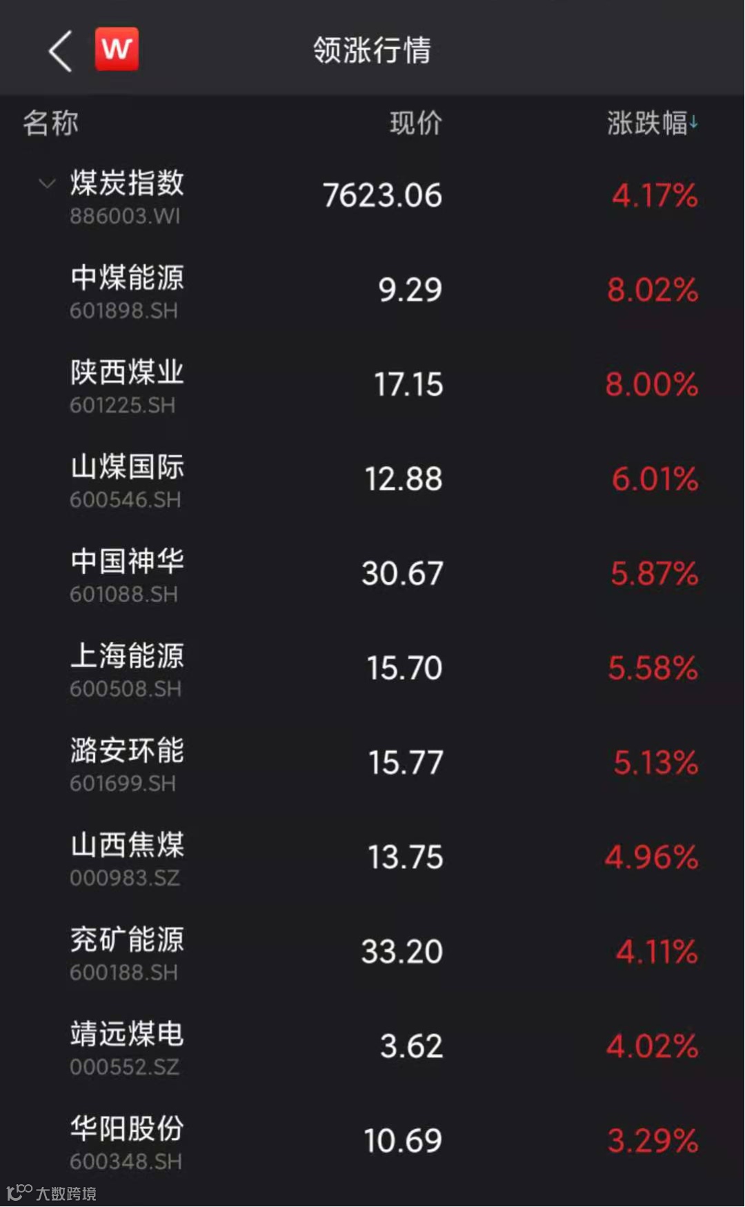 煤炭股持续走高