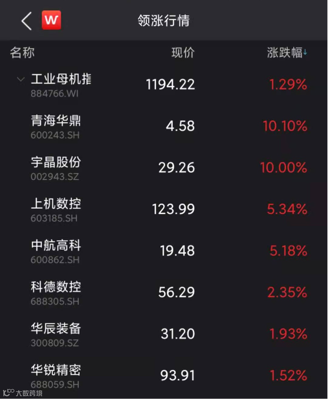 4月28日上午,工业母机板块异动拉升,板块内青海华鼎、宇晶股份涨停,上机数控等涨超5%。