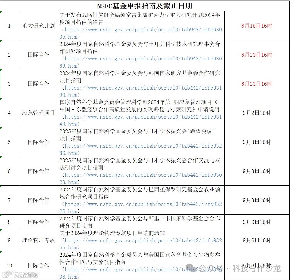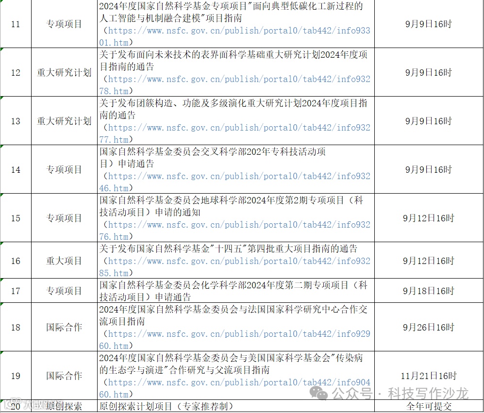 最近各位科研工作者都在焦急地等待国自然基金的评审结果,除了集中申请期的项目,基金委每年在非集中申请期也会陆续发布一些项目指南。小沙为大家总结了近期基金委发布的项目指南及截止日期,一起来看看吧~