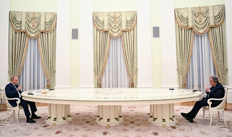 4月26日,俄罗斯总统普京(左)在莫斯科与联合国秘书长古特雷斯举行会谈。(新华社/塔斯社)