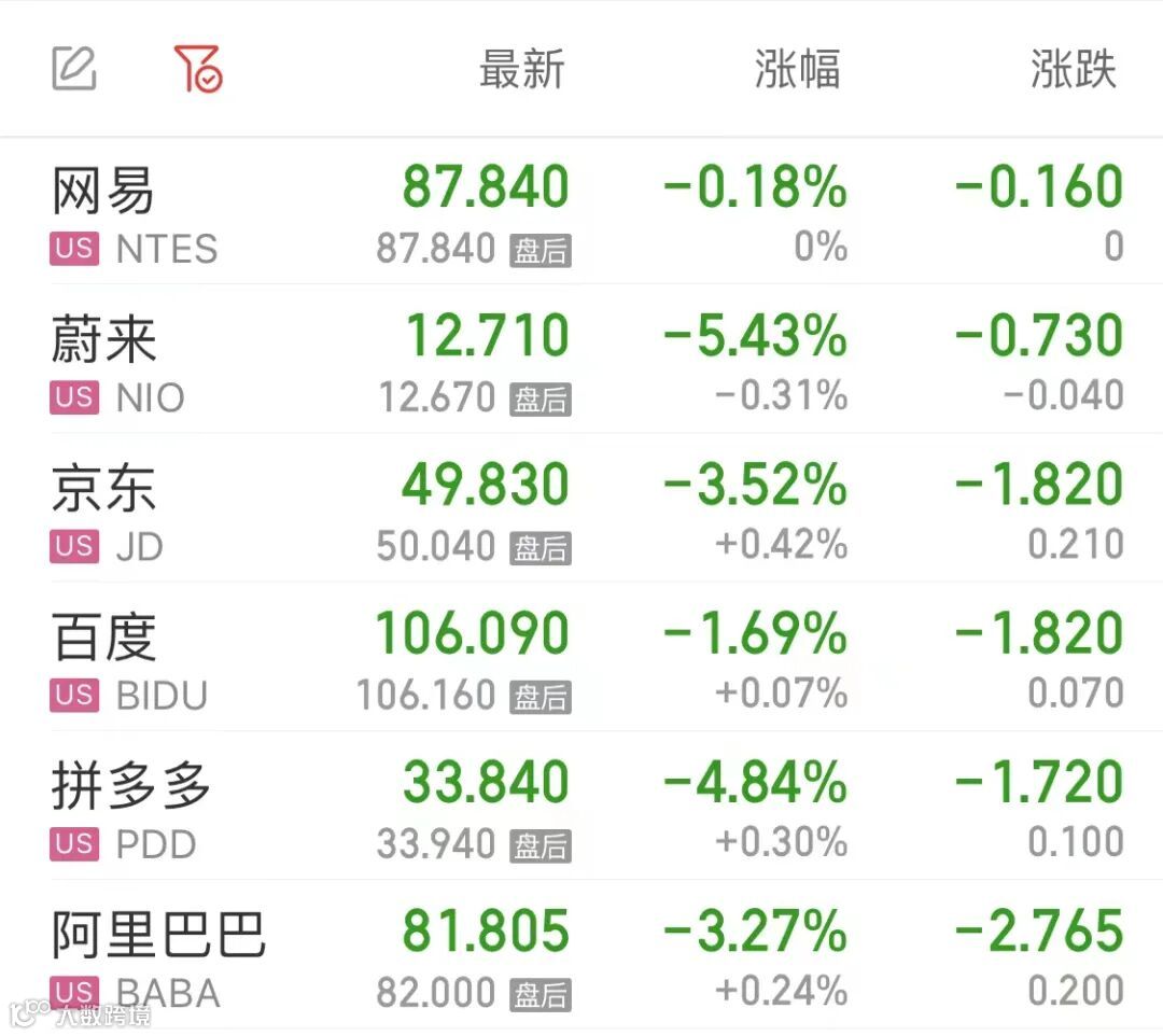 热门中概股多数下跌