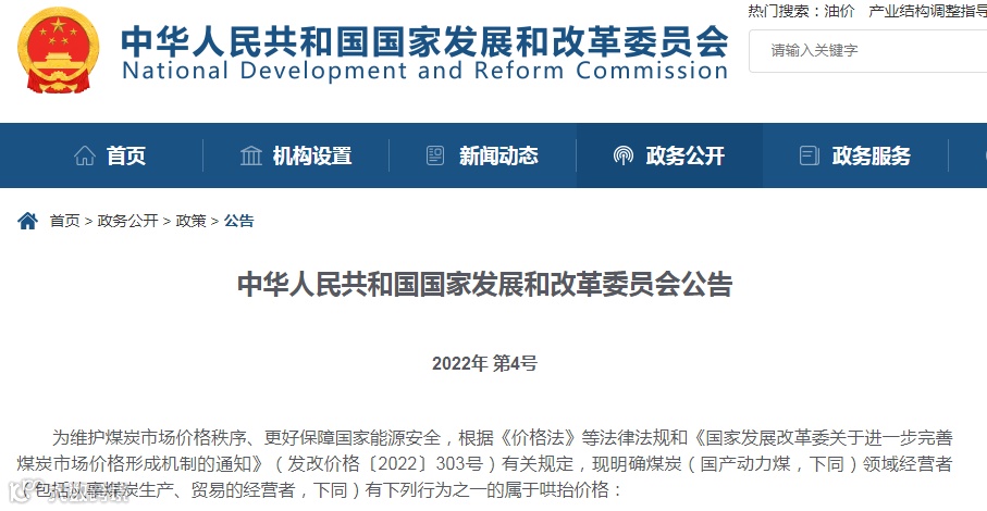 此前,国家发改委出台《关于进一步完善煤炭市场价格形成机制的通知》,确定煤炭中长期交易价格合理区间,通知于2022年5月1日起执行。