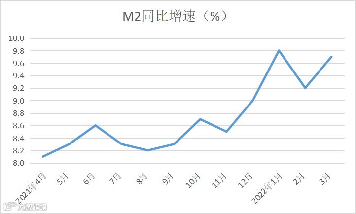3月末,广义货币(M2)余额249.77万亿元,同比增长9.7%
