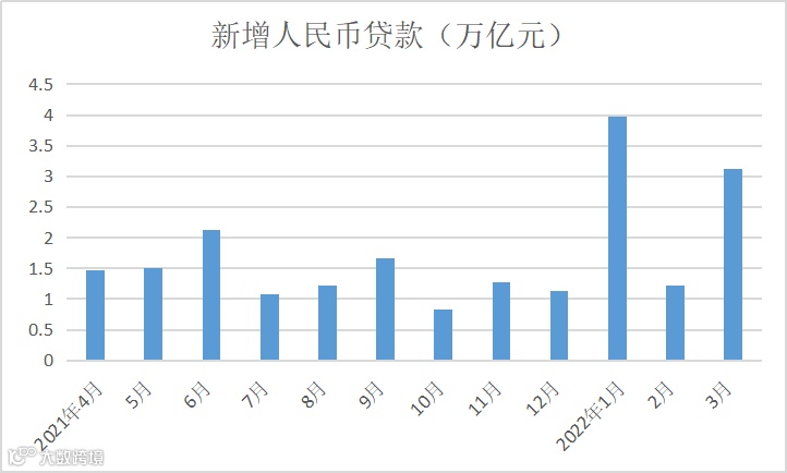 3月,人民币贷款增加3.13万亿元,同比多增3951亿元