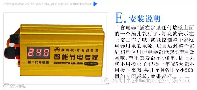 我们的节电器不是“偷电器”,不是“电表控制器”是靠一点一滴减少线损,产生回流节电的,这个是需要时间的,亲们可以上下两个月对比下或做个短回路测试到,那种希望几天就能马上看到效果,或者是一插上去就想立即看到电表反转或慢转或不转的朋友,请另找别家,我们没有那种速成的节电产品,也没有那种非法的“电表调校器”我们靠的是实实在在的去节电使用1个月以上,至少省电达20%以上…!