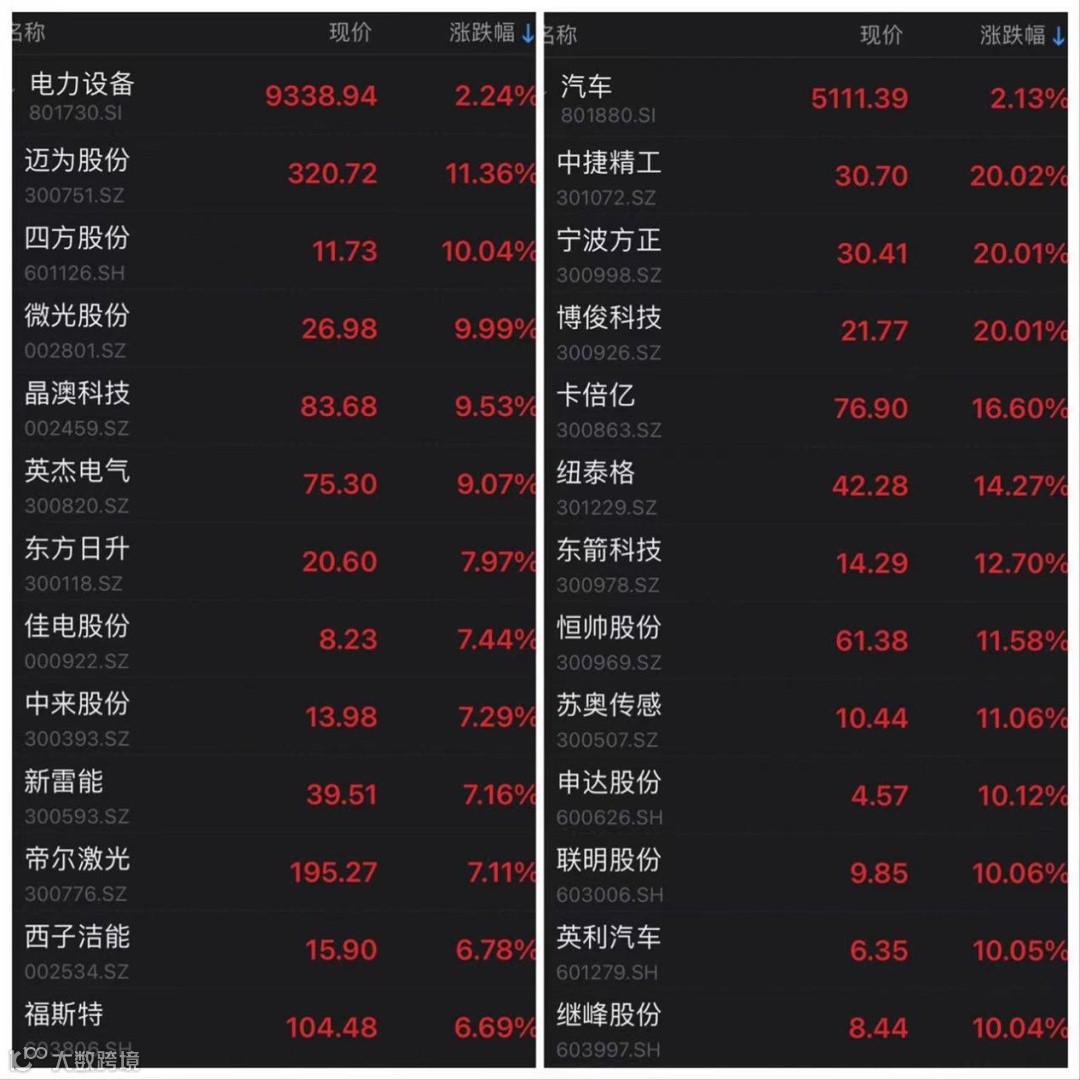 汽车板块上演涨停潮