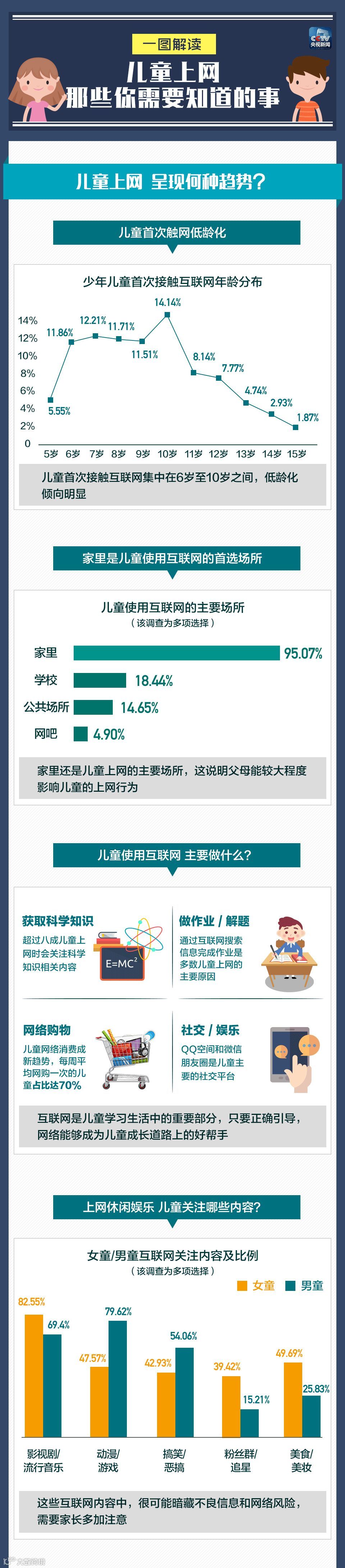 儿童上网时都关注哪些内容?基于他们的关注点,家长们需要加倍重视哪些风险?如果孩子接触了网络上不好的内容,家长又该如何做?今天,跟随一张图,一起了解↓↓