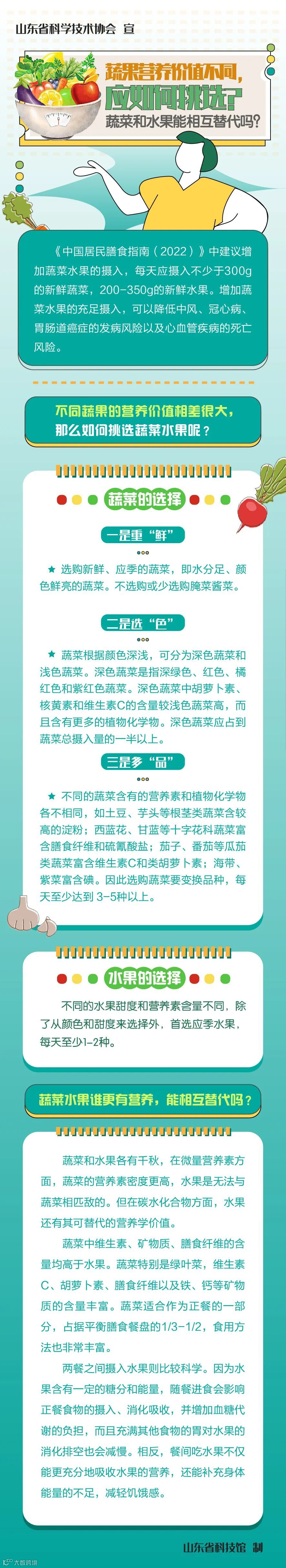 【山东科协每日科普】蔬果营养价值不同,应如何挑选?蔬菜和水果能相互替代吗?