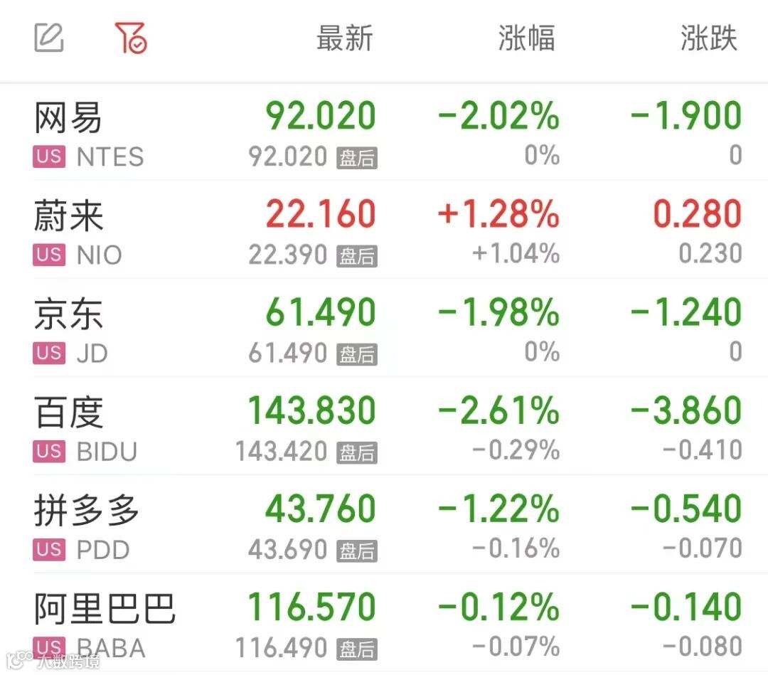 周三,特斯拉跌逾0.5%,奈飞跌逾2.6%,亚马逊跌1.8%,Meta跌0.9%,苹果跌0.7%,微软跌0.5%,谷歌母公司Alphabet跌0.4%。