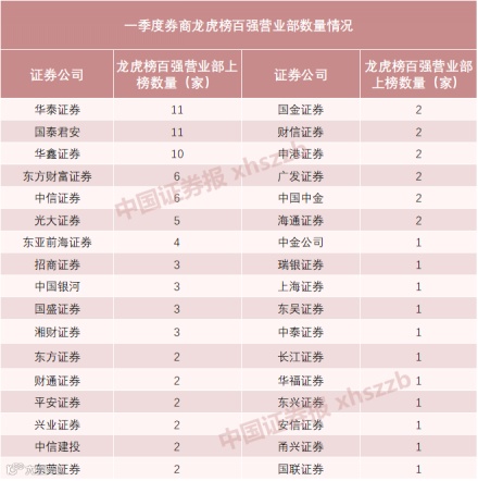 国泰君安、华泰证券上榜营业部数量