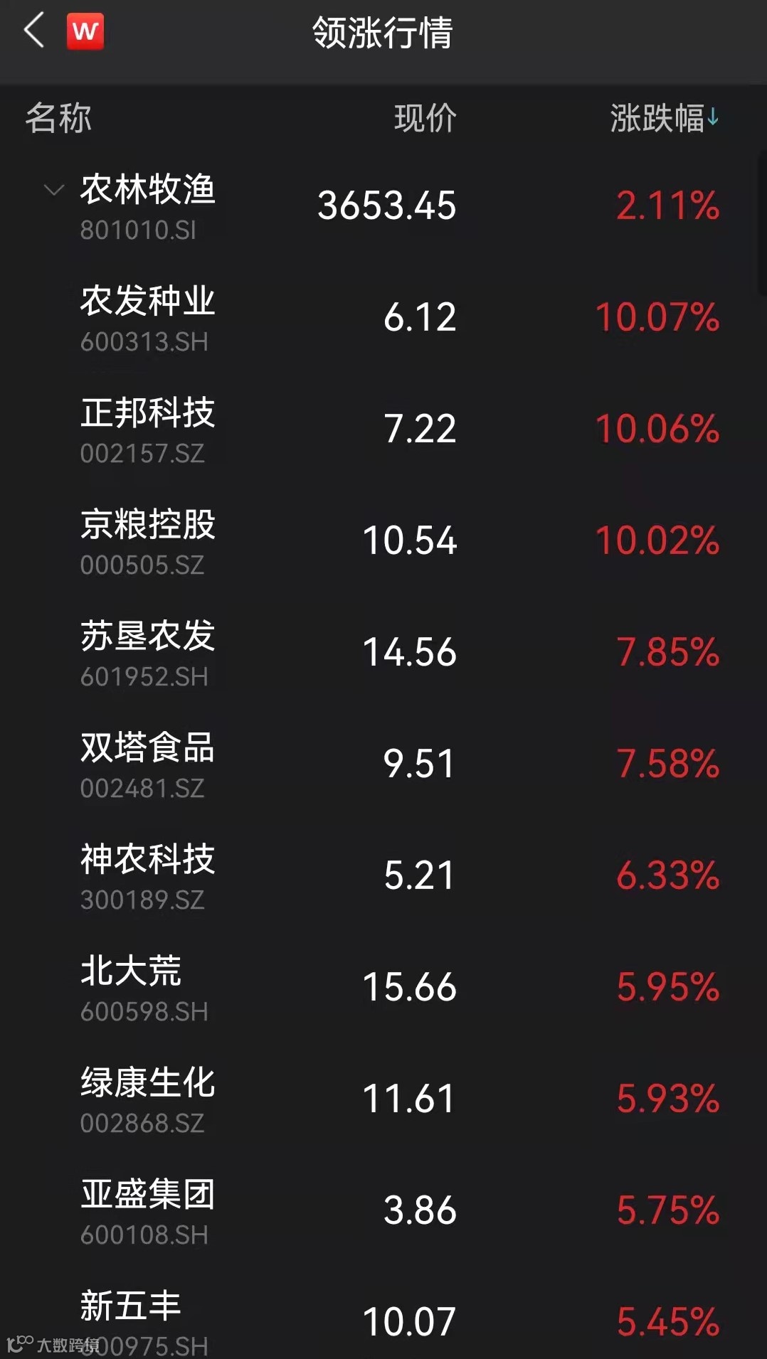 农业板块全线飘红