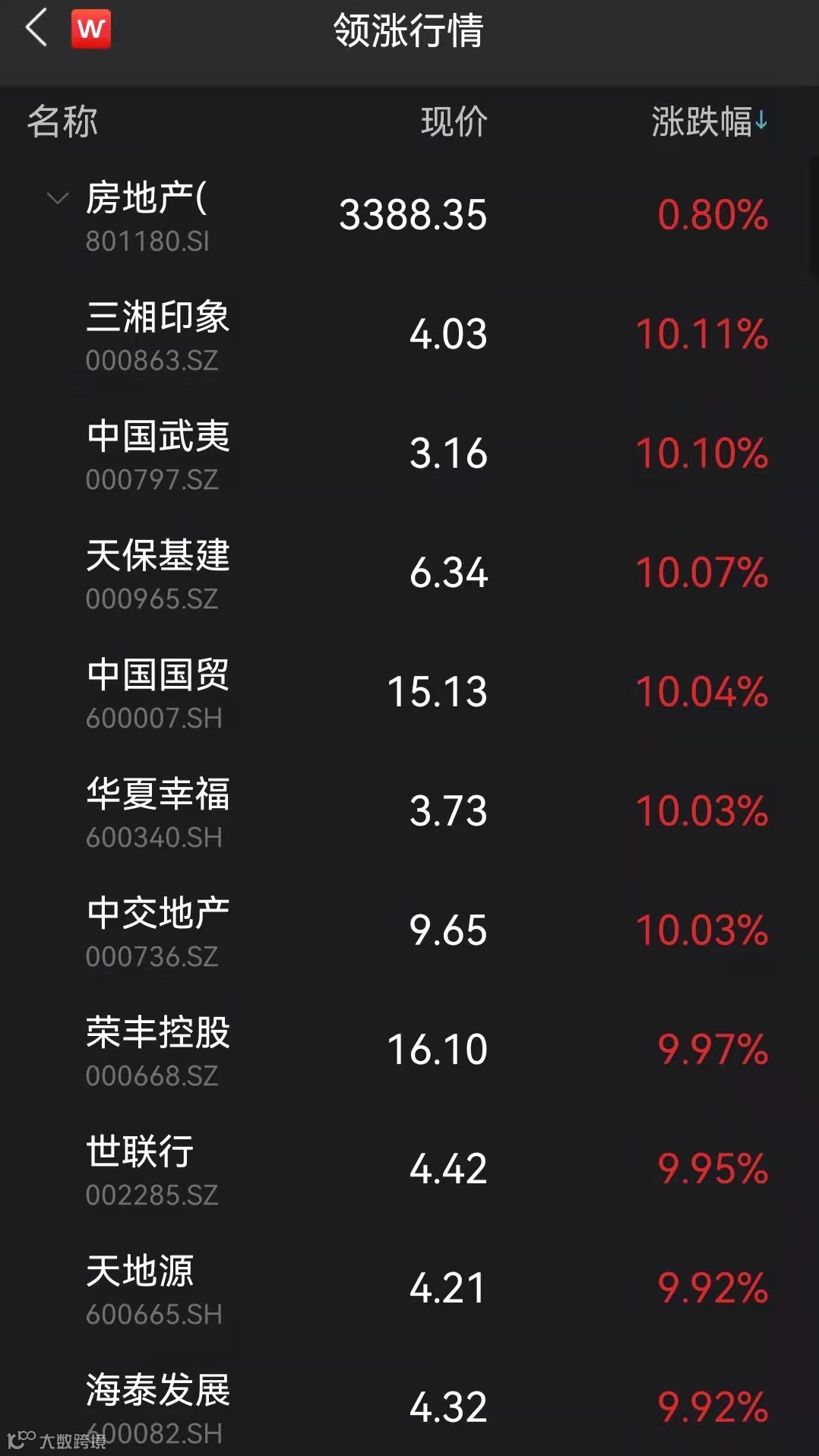 同样出现涨停潮的还有房地产板块。Wind数据显示,截至午间收盘,房地产板块涨0.80%,三湘印象、中国武夷、天保基建、中国国贸、华夏幸福、中交地产、荣丰控股等个股集体拉升涨停。